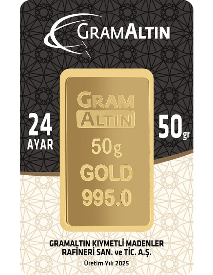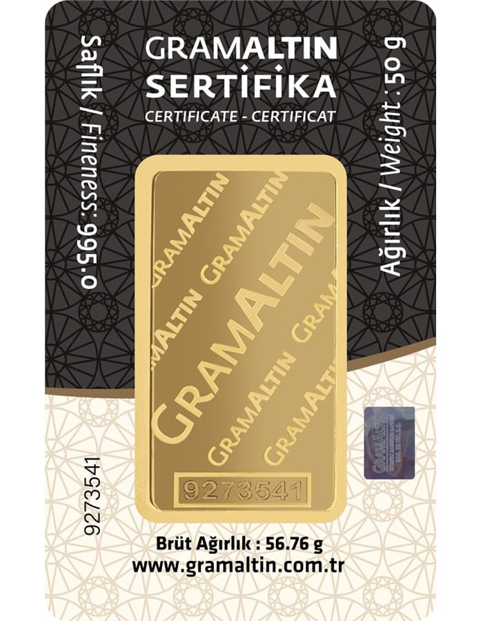 50 Gram 24 Ayar Sertifikalı Gram Altın (995/1000 saflıkta)