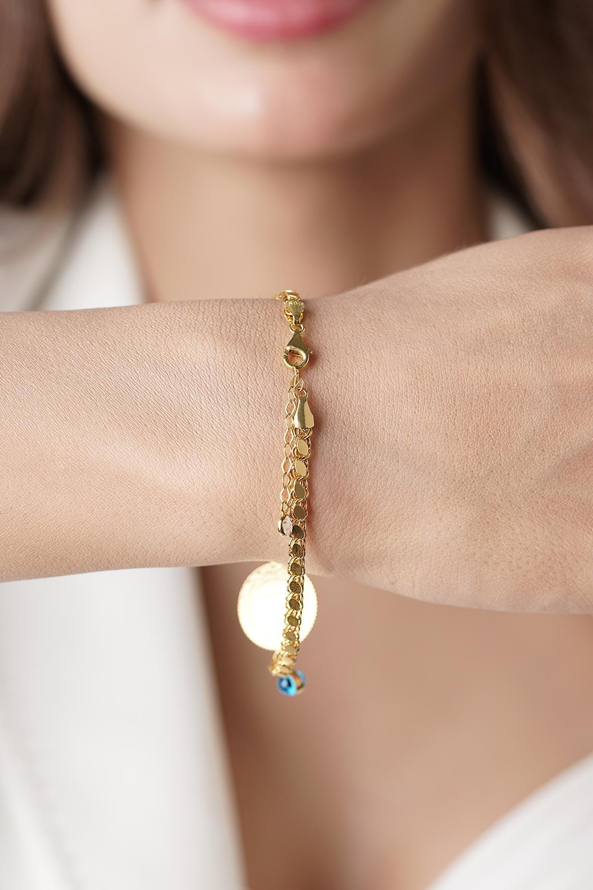 | 14 Ayar | 5,27 gr (3,52 gr 14 ayar bileklik + 1,75 gr 22 ayar çeyrek altın) | 19 cm |